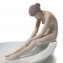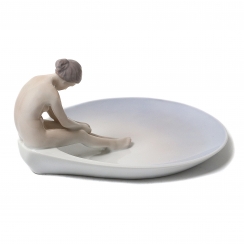 Фарфоровая ваза с фигуркой девушки "Медитация". Ручная подглазурная роспись.