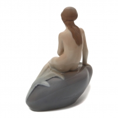 Фигура произведена после объединения фабрик Royal Copenhagen и Bing & Grondahl (1985-1989). До объединения, фигура выпускалась фабрикой Royal Copenhagen с номером модели 4431. ======================================= Porcelain figurine "The Little Mermaid". Hand-painted underglaze.