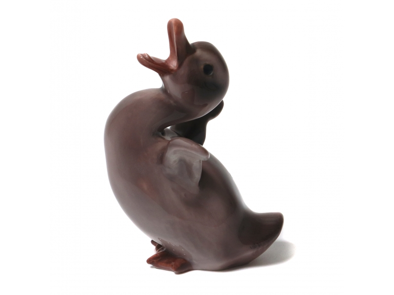 Фарфоровая фигура (статуэтка) "Утенок с расправленными крыльями". Ручная подглазурная роспись.