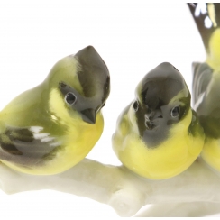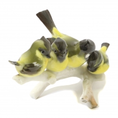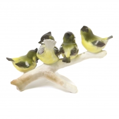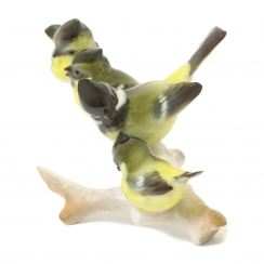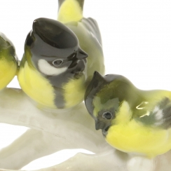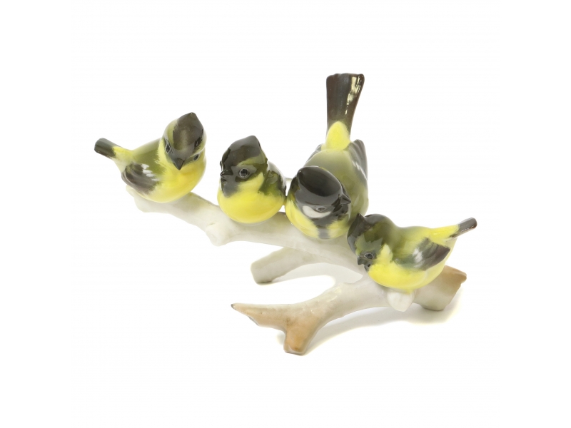 Фарфоровая фигура (статуэтка) "Четыре синицы на ветке". Ручная роспись.