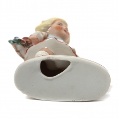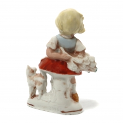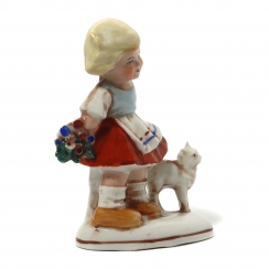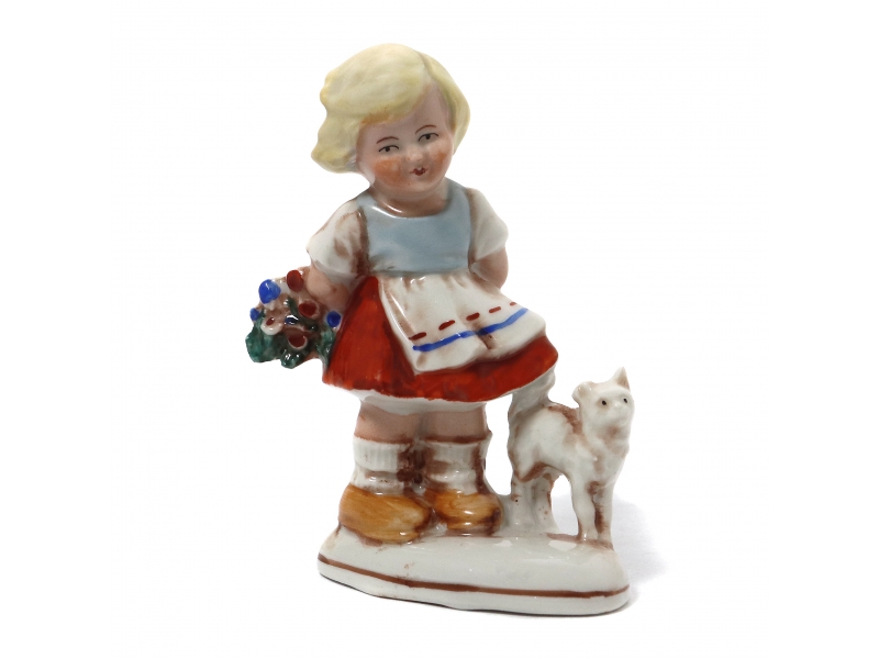 346144 - Девочка с букетом и кошка, высота 10,5 см, основание 6,8 х 3,3 см, Европа