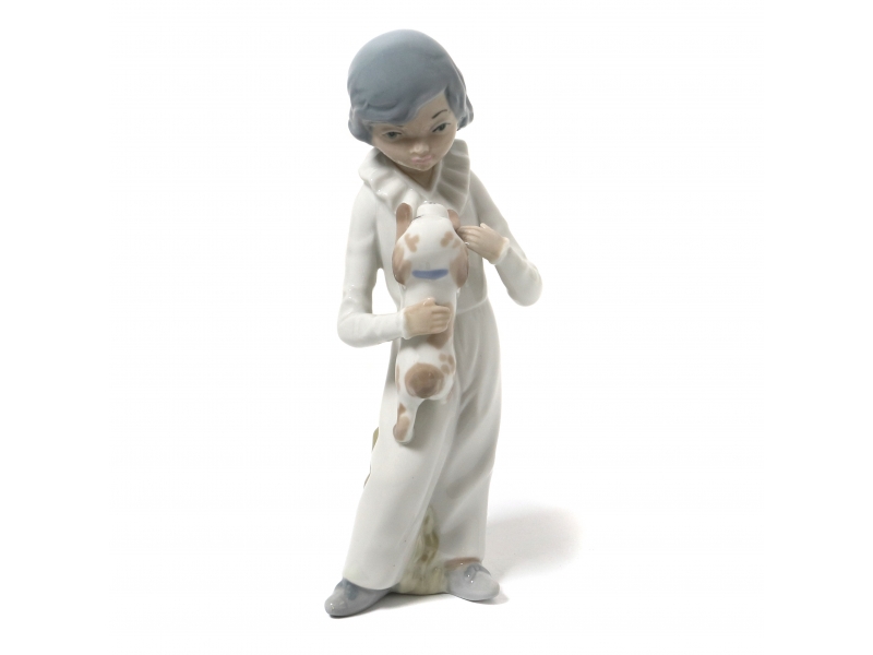 Фарфоровая фигура (статуэтка) "Пьеро со щенком". Ручная подглазурная роспись.