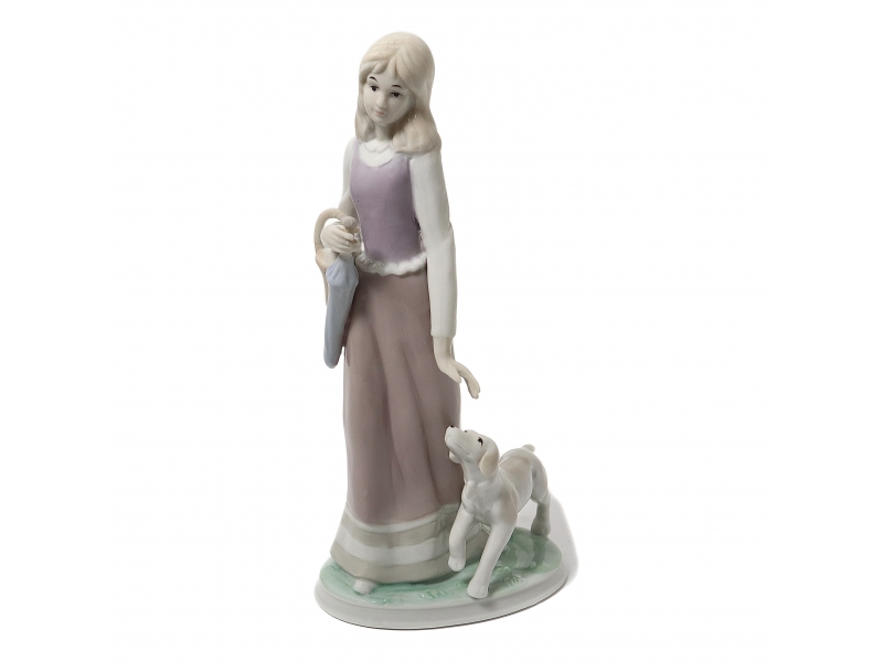 346413 - Девушка с собакой, высота 23,3 см, основание 11 х 8 см