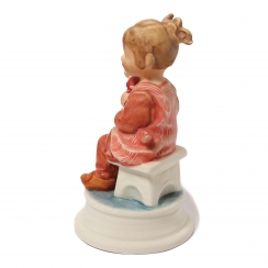 346433 - Девочка с куклой, сидящая на табурете, высота 13,5 см, диаметр основания 7,4 см, Германия, Goebel