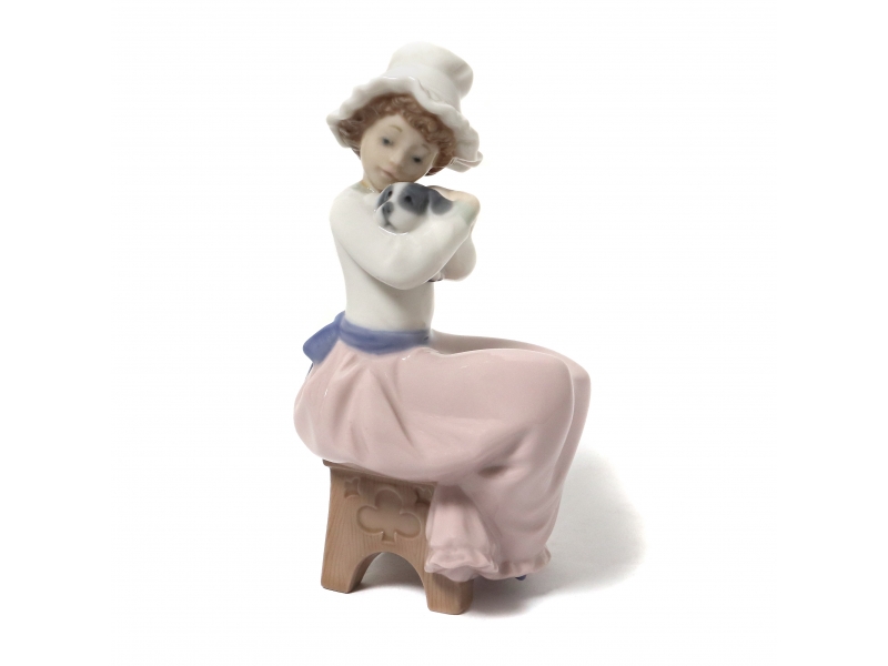 Фарфоровая фигура (статуэтка) "Девочка со щенком" (Крепкие объятия). Ручная подглазурная роспись.