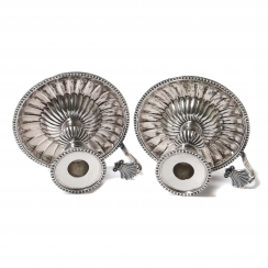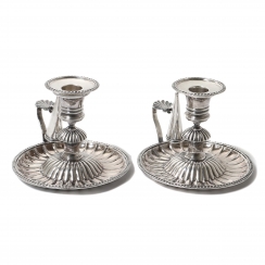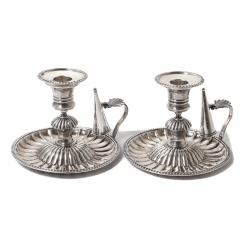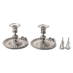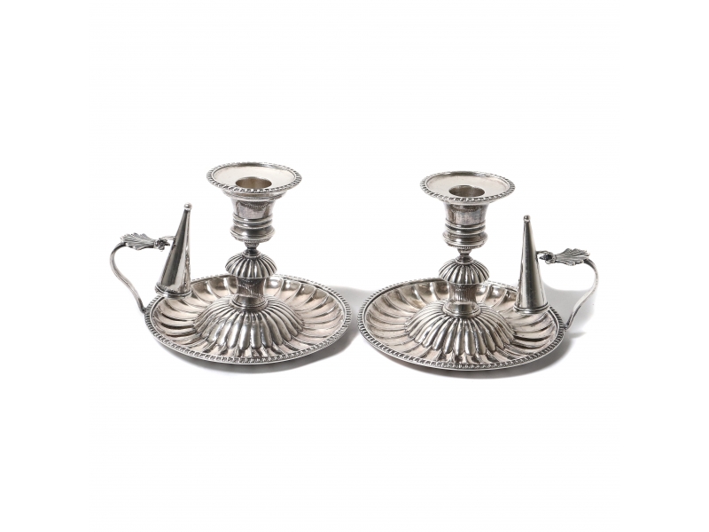Пара серебряных переносных подсвечников с гасителем для свечей.