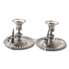 Общий вес: 549 граммов серебра 830 пробы. =========================== Pair of silver portable candlesticks with candle snuffers.