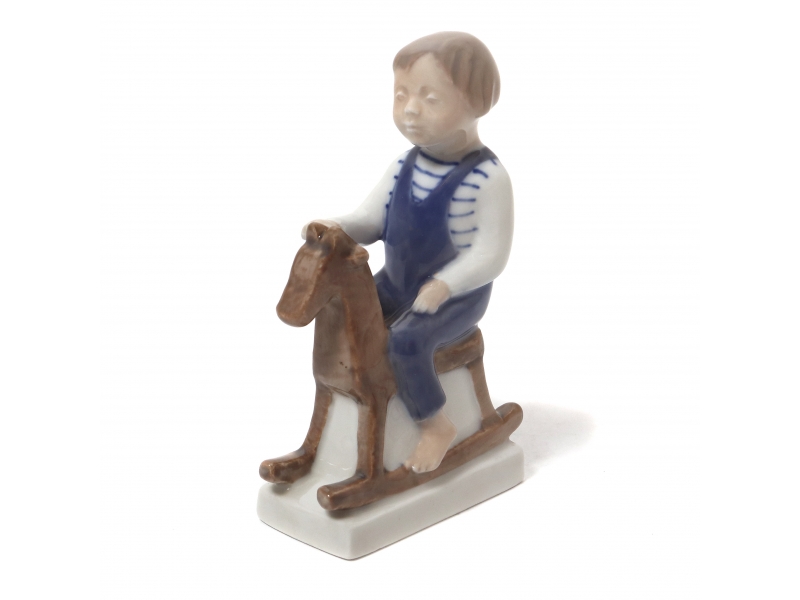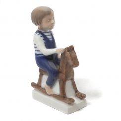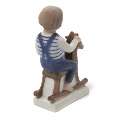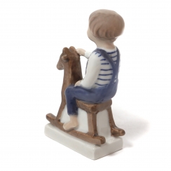 Фарфоровая фигура (статуэтка) "Мальчик на игрушечной лошадке". Ручная подглазурная роспись.