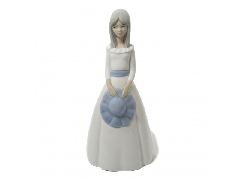 349910 - Девушка с голубой шляпой в руках, высота 22,5 см, основание 10 х 9,2 см, Испания