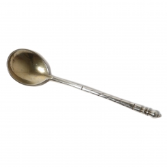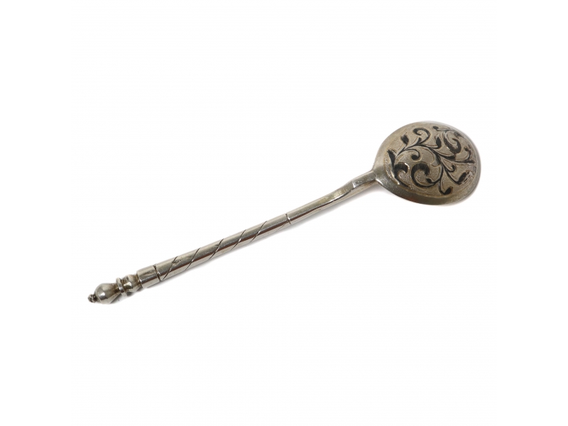 Length: 12.8 cm. Weight: 25 grams of silver 84 fineness in zolotniki ( = 875 metrical fineness).