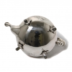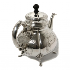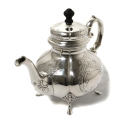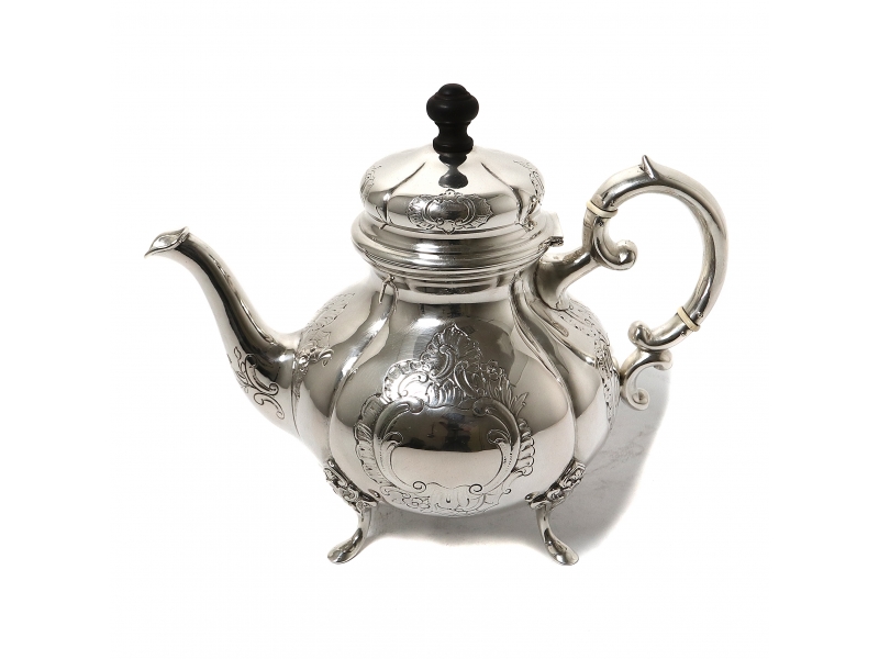 Высота по хватку на крышке: 19,5 см. Вес: 674 грамма серебра 826 пробы. ============================ Sterling silver tea, decorated with a floral pattern.