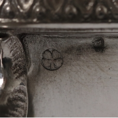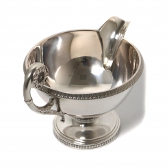 Height at the edge: 7.5 cm, base diameter: 6 cm, diameter of the top: 9.8 cm. Volume: 140 ml. Weight: 192 grams of silver 800 fineness.