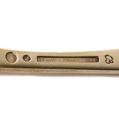Надпись "GEORG JENSEN" в овале, обрамленная точками – клеймо дизайнерского дома "Georg Jensen", используется с 1945 года по настоящее время. Разработанный дизайн Annelise Bjorner. Клеймо "Sterling Denmark" удостоверяет, что изделие выполнено в Дании из серебра 925 пробы.