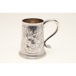 Кружка, Англия, 18 век, 334 гр, 925 пр, высота 12,5 см, диаметр основания 10 см, диаметр верха 7,8 см