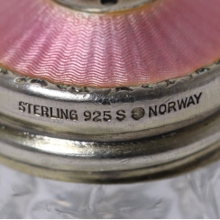 Солонка. Стекло, серебро 925 пробы, розовая эмаль по гильоше.