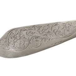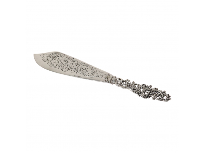 Длина: 23 см. Вес: 66 граммов серебра 830 пробы. ========================== Solid silver knife for cake or pie.
