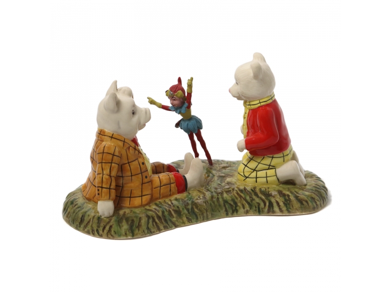 Без сколов, повреждений и без реставраций. Состояние коробки смотрите на фотографии. ============================ Porcelain figurine "Rupert, Podgy Pig and the Imp of Spring" from the collection "Rupert the Bear". Hand-painted. In original box.