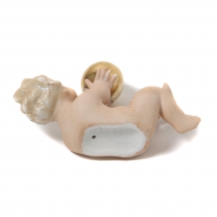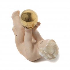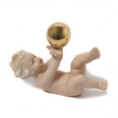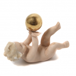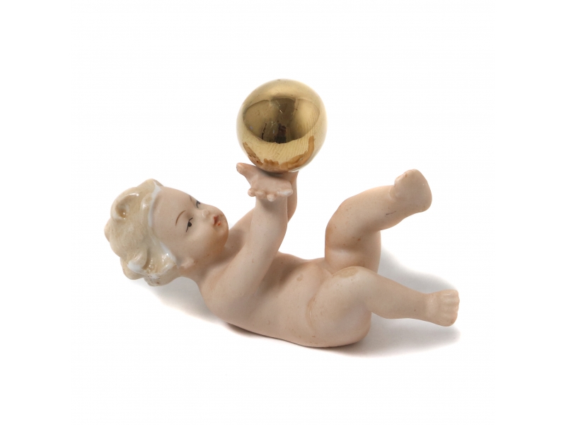 Фарфоровая фигура (статуэтка) "Обнаженный мальчик (путти) с золотым мячом". Ручная роспись.