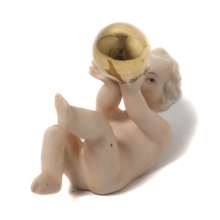 Без сколов, повреждений и без реставраций. ======================================= Porcelain figurine "Nude boy (putti) with a golden ball". Hand-painted.