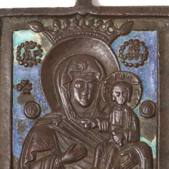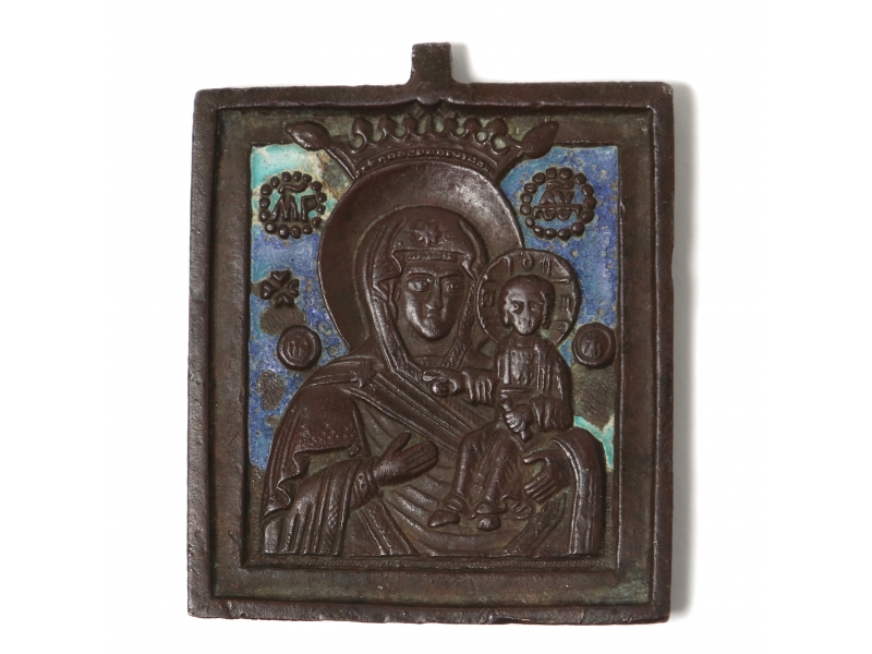 Литая икона "Пресвятая Богородица Смоленская". Бронза, эмаль.