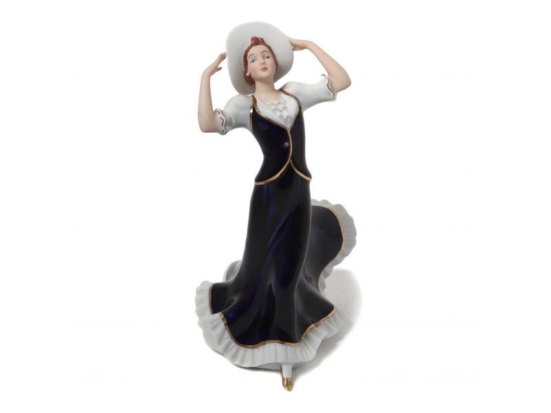 Фарфоровая фигура (статуэтка) "Девушка в шляпе". Ручная роспись.