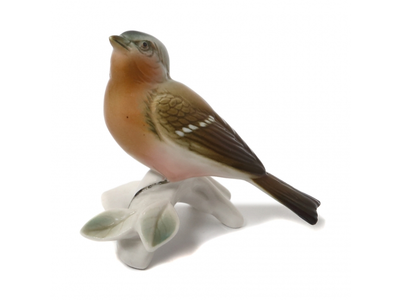 Фарфоровая фигура (статуэтка) "Зяблик на ветке". Ручная подглазурная роспись.