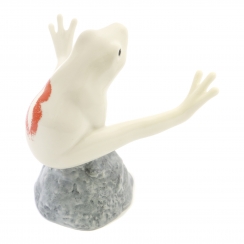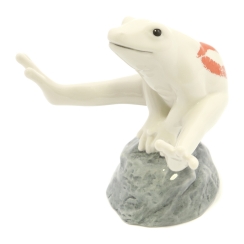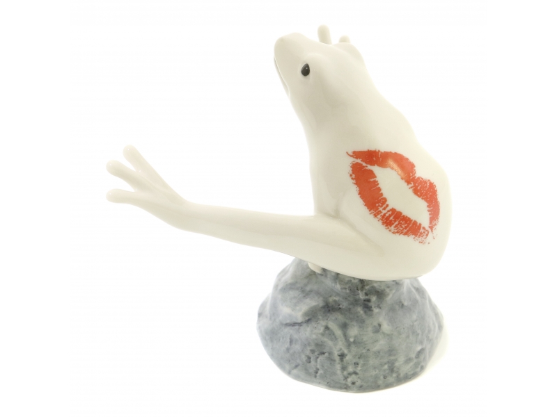 Фарфоровая фигура (статуэтка) "Лягушка с поцелуем на камне (Белая)" из серии "Лягушки удачи". Подглазурная роспись.