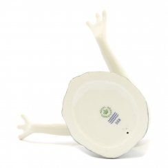 Серия включает следующие статуэтки: 555 Лягушка на камне (Золотая) 556 Лягушка на камне (Зелёная) 557 Лягушка на камне (Синяя) 558 Лягушка на камне (Белая) 579 Лягушка на камне (Серебристая) ======================================= Porcelain figurine "Frog with a kiss on the stone (White)" From the "Good Luck Frogs" series. Underglaze painting.