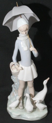 354000 - Девочка с зонтом и утки, высота 25 см, основание 10,5 х 10 см, Испания, Lladro |