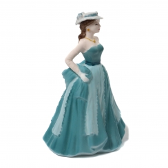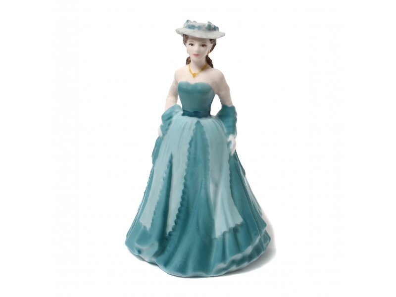 354091 - Девушка в бирбзовом платье и шляпе, высота 12,5 см, длина 7,5 см, ширина 7,5 см, Англия, Coalport