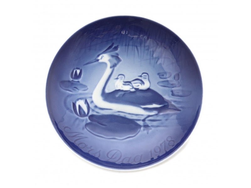 Блюдце первого сорта. Без сколов, повреждений и без реставраций. ================================ Wall porcelain saucer "Grebe with Chicks" (Lappedykker med unger) from a series of "Mother's Day".