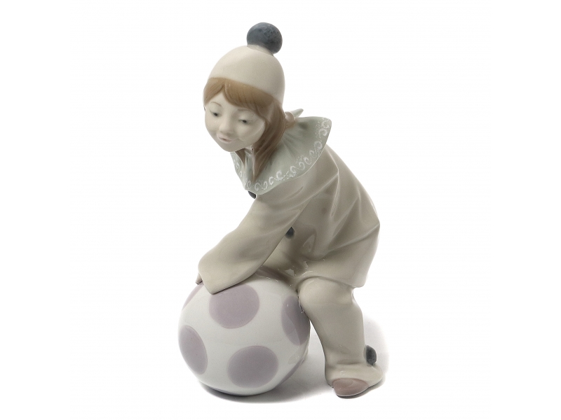 354244 - Мальчик в костюме Пьеро с мячом, высота 17,5 см, длина 10,5 см, ширина 8 см, Испания, Lladro
