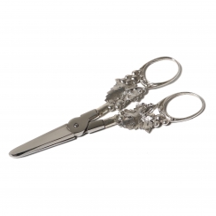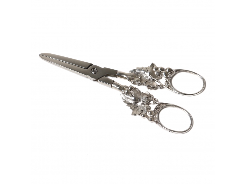 Ножницы для винограда с серебряными ручками и стальными лезвиями. Ручки декорированы виноградной лозой.