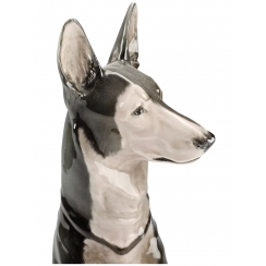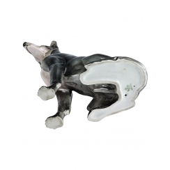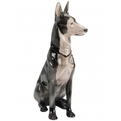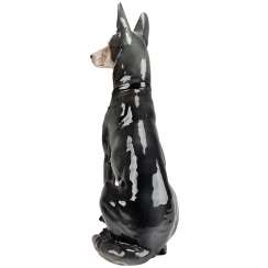 Фарфоровая фигура (статуэтка) "Сидящая немецкая овчарка". Ручная подглазурная роспись.