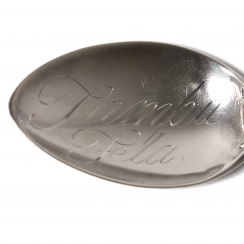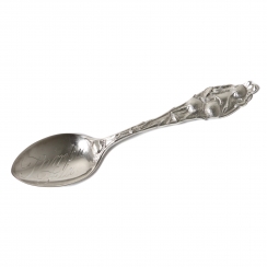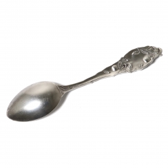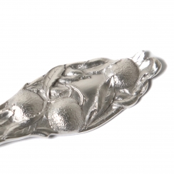 Серебряная чайная ложка, ручка ложки декорирована мандаринами на ветке.