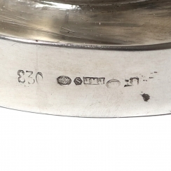 Ввезены в Швецию, г. Гетеборг, 1943 год, импортер Johansson J.M. (JMJ, годы работы: 1913-1961). Государственное пробирное клеймо Швеции для ввезенных серебряных изделий.