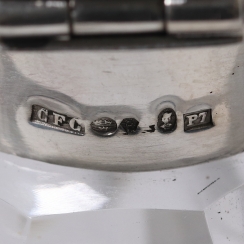 Ввезен в Швецию, г. Стокгольм, 1917 год, импортер Carl Fredrik Carlman. Государственное пробирное клеймо Швеции для ввезенных серебряных изделий.