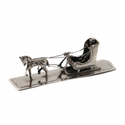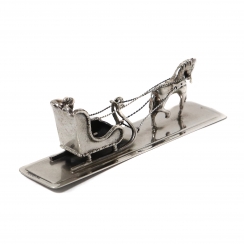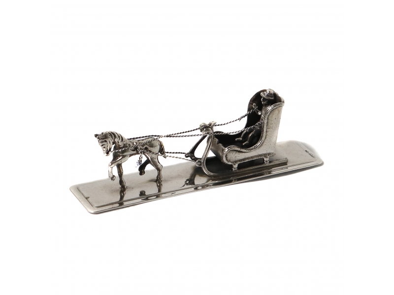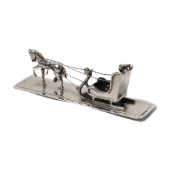 Высота 2,5 см, размер основания: 8 х 2 см. Вес: 22 грамма серебра 835 пробы. ========================= Silver miniature "Horse-drawn carriage".