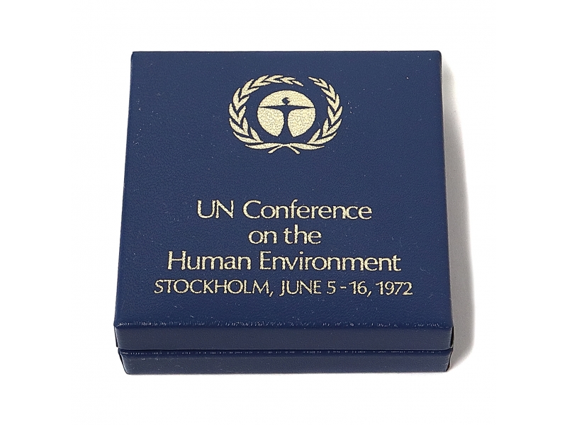 Памятная двухсоставная серебряная медаль, выпущенная в честь первой Конференции ООН по проблемам окружающей среды, которая проходила в Стокгольме с 5 по 16 июня 1972 года. Медаль состоит из двух полусферических частей, которые соединяются между собой. Автор медали — известный финский скульптор Кауко Рясянен. В коробке. Сертификат.