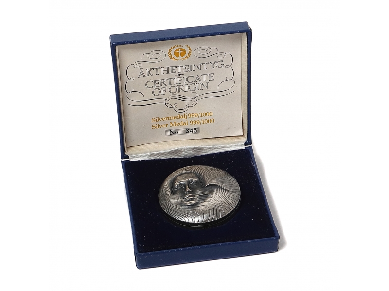 Памятная двухсоставная серебряная медаль, выпущенная в честь первой Конференции ООН по проблемам окружающей среды, которая проходила в Стокгольме с 5 по 16 июня 1972 года. Медаль состоит из двух полусферических частей, которые соединяются между собой. Автор медали — известный финский скульптор Кауко Рясянен. В коробке. Сертификат.