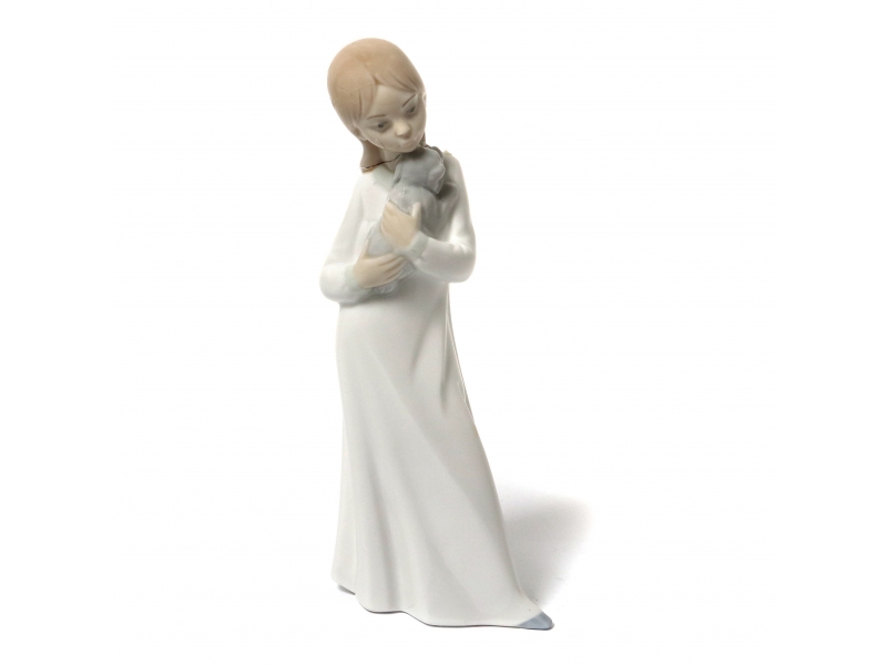 Фарфоровая фигура (статуэтка) "Девочка с собакой". Ручная подглазурная роспись.