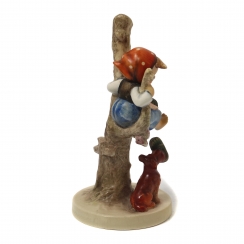358144 - Девочка на яблоне и собака с тапком, высота 15,7 см, диаметр основания 7,8 см, HUM_56