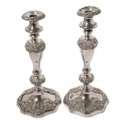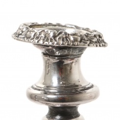 Посеребренные подсвечники, 2 шт, декорированы рельефным растительным узором.