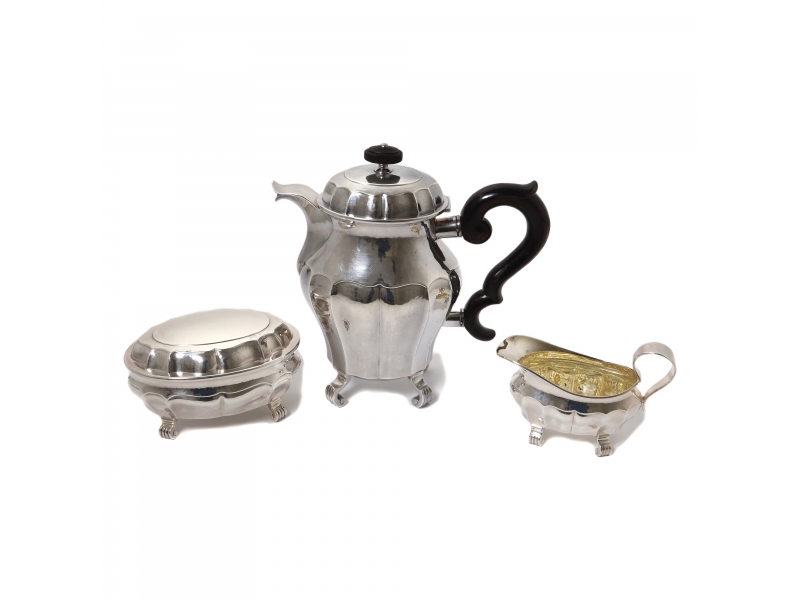 Серебряный кофейный сервиз, 3 предмета, ковка.