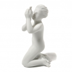 Фарфоровая фигура (статуэтка) "Мальчик с ракушкой". Нерасписанный белый фарфор. Белая глазурь.