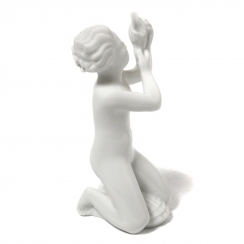 Серия включает: Мальчик с ракушкой Мальчик на морском коньке Мальчик на дельфине Русалка ========================== Porcelain figurine "Boy with shell". White glaze. Blanc de chine.