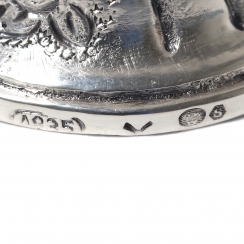 Height: 9.5 cm, base diameter: 3.2 cm. Weight: 65 grams of silver 835 fineness.