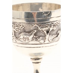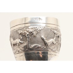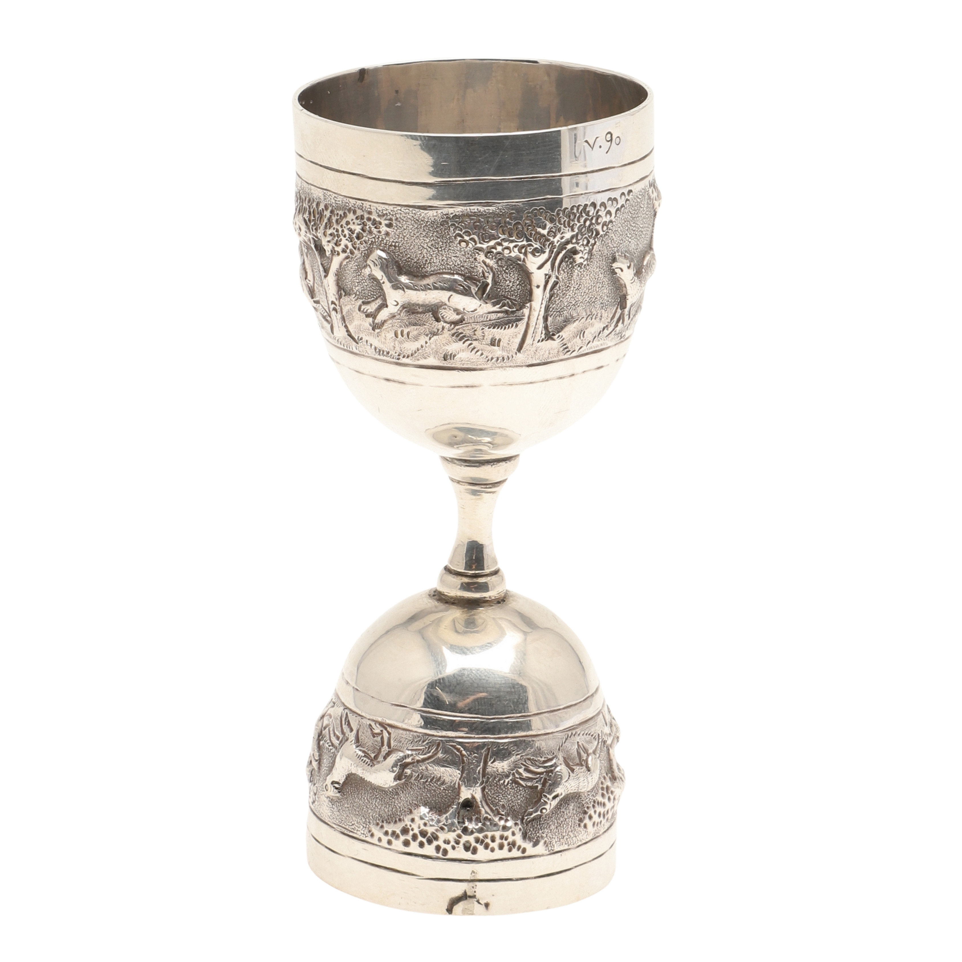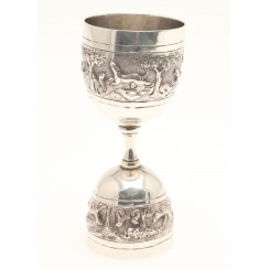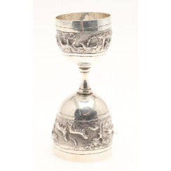 359594 - Серебряная сдвоенная рюмка или мерный стаканчик бармена (Джиггер), 122 гр, высота 11,3 см