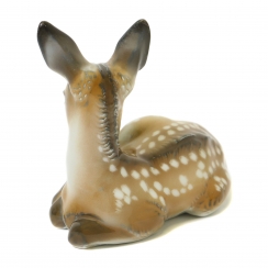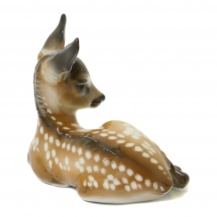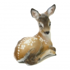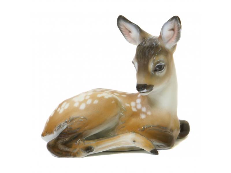 Фарфоровая фигура (статуэтка) "Лежащий оленёнок". Ручная подглазурная роспись.