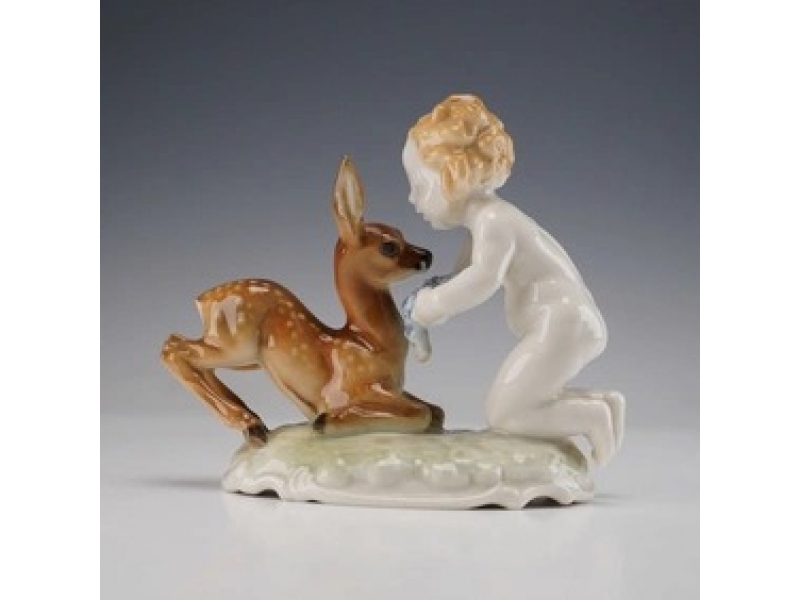 Мальчик с олененком, высота 10,5 см, основание 9,7 х 6,2 см, Германия, Hutschenreuther